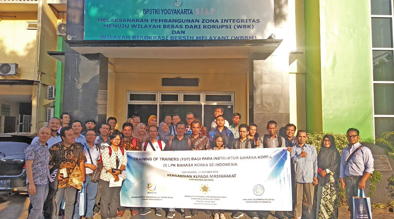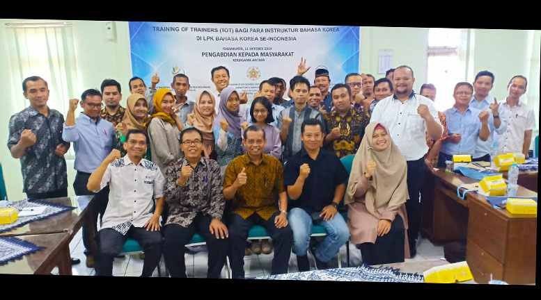 Kegiatan TOT ini adalah angkatan kedua yang dilaksanakan secara Gratis oleh Prodi Bahasa Korea, FIB UGM Yogyakarta bekerjasama dengan BP3TKI Yogyakarta dan PELBAKORI. Peserta kali ini ada 30 Instruktur dari berbagai daerah di Indonesia seperti Jakarta, Cirebon, Purwokerto, Cilacap, Madiun, Ponorogo, Jogja, Magelang dll.